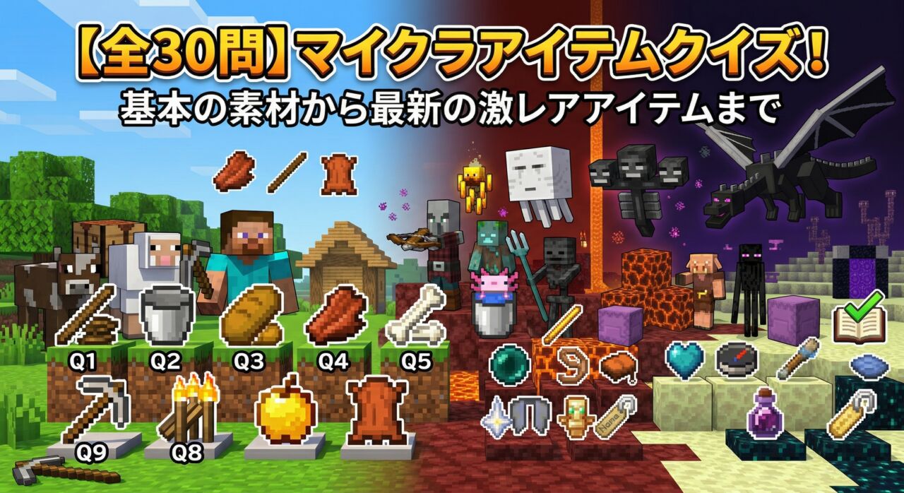 ゲームを始めたその日からお世話になる基本アイテムから、最新バージョンで追加されたマニアックな激レアアイテムまで、難易度別に幅広く出題しています。ご自身の知識をフル活用して、全問正解の「アイテムマスター」を目指して挑戦してみてください!